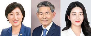 더불어민주당 광주시당이 실시한 제9대 광주시의회 의장단 선거에서 후보로 확정된 광주시의원. 왼쪽부터 신수정 의장 후보, 서용규 제1부의장 후보, 채은지 제2부의장 후보.