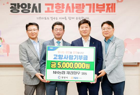 광양시는 NH농협 재경향우 10명이 광양의 빛나는 발전을 응원하기 위해 고향사랑 기부에 동참해 기부금 500만원을 전달했다고 3일 밝혔다.