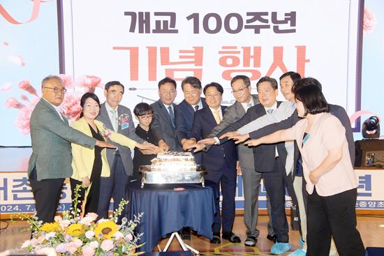 대촌중앙초등학교는 3일 학생, 교사, 동문 등이 참여한 가운데 ‘개교 100주년 기념식’을 개최했다.