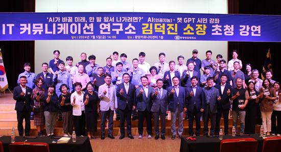 광양상공회의소는 지난 5일 광양커뮤니티센터 1층 다목적홀에서 기업체 임·직원 및 시민 300여명이 참석한 가운데, IT 커뮤니케이션 연구소 김덕진 소장을 초청해 ‘AI가 바꿀 미래, 한 발 앞서 나가려면?’을 주제로 시민강좌를 개최했다.