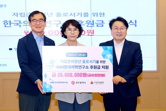 (재)KMI한국의학연구소가 자립준비청년을 위해 후원금 2000만원을 광주시에 전달했다.