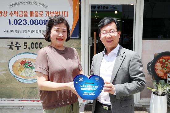 천원밥상을 열면서 밥값으로 받은 1000원을 지역사회에 환원한다고 약속한 박가순 대표는 이날 그동안 모인 수익금 102만3080원 전액을 투게더광산 나눔문화재단에 기탁했다. 기부한 돈은 송정1동 돌봄 이웃을 위한 복지 지원에 쓰일 예정이다.