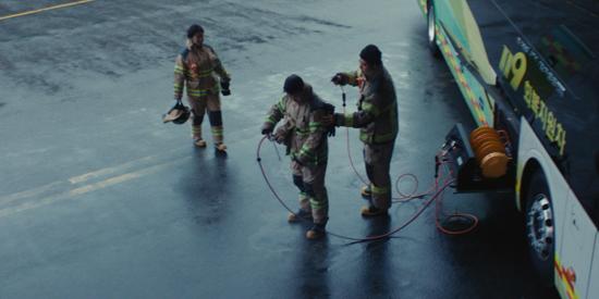영상 속 소방관들은 불길과 연기가 가득한 대형 화재 현장에서 2~30분 간격 교대 투입해 화재 진압에 나선다. 소방관들은 교대 후 휴식 시 배기가스 없이 순수한 물 만을 배출하고 소음과 진동이 없는 회복지원 수소전기버스의 내부에서 다음 교대 투입을 위해 재충전하는 모습을 보여준다.