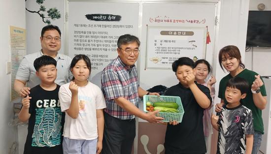 계림초교 학생들은 지난 4월부터 직접 텃밭을 일구고 씨를 뿌려 수확한 오이고추와 방울토마토 등 자율적으로 모은 생활 물품을 돌봄 이웃에게 전달해달라며 기부했다.