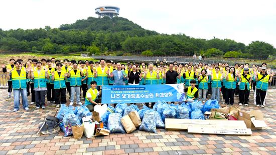7일 나주 빛가람 호수 공원에 120여 명의 청년들이 모여 \'Blue Ocean\' 프로젝트를 진행했다. 이들은 하나님의 교회 세계복음선교협회 직장인 청년 봉사단 ASEZ WAO로, 하천이나 바다로 흘러 들어가는 쓰레기를 막아 해양 생태계를 보호하는 환경보전 활동을 펼쳤다.