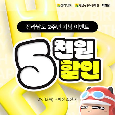 전남도가 지난 2022년 7월 도입한 공공배달앱 ‘먹깨비’ 2주년 기념으로 11일부터 5000원 할인이벤트를 진행한다.