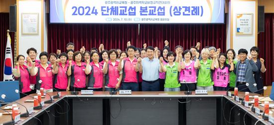 광주시교육청은 10일 중회의실에서 광주지역학교비정규직연대회의와 ‘2024년 단체교섭 상견례’를 가졌다.
