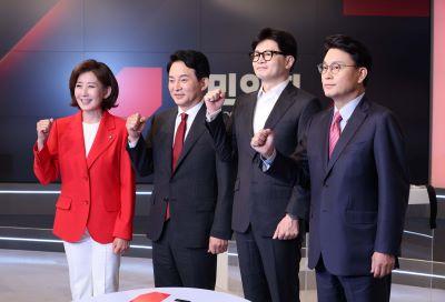 한 후보는 이날 오후 서울 중구 MBN 스튜디오에서 열린 당대표 후보 방송토론회에서 자신의 주도권 토론 첫 상대로 원 후보를 지목하며 \"본인 입으로 제 가장 가까운 가족이 공천에 개입했다고 했다. 근거를 말하라\"고 요구했다.