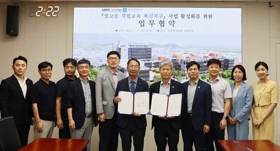광주시교육청은 11일 한국광기술원과 기술원 대회의실에서 ‘빛고을 직업교육 혁신지구 사업의 활성화를 위한 업무협약(MOU)’을 체결했다. /광주시교육청 제공