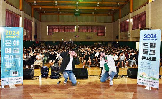‘드림토크콘서트’는 다양한 분야의 명사 초청 강연을 통해 학생들에게 꿈과 미래 비전 형성의 기회를 제공하는 ‘기아챌린지 사업’의 대표 프로그램으로 문화예술공연과 명사의 강연으로 진행된다.
