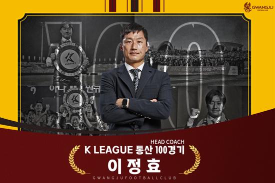 프로축구 K리그1 광주FC를 이끄는 이정효 감독이 \'K리그 통산 100경기(K리그1 60경기·K리그2 40경기) 지휘\'라는 금자탑을 쌓았다.