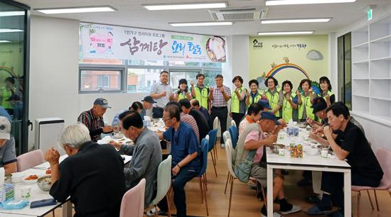 이번 행사는 15일 초복을 앞두고 쪽방촌에 거주하는 1인 가구 30여 명과 함께 삼계탕을 만들고 나누면서, 식생활 개선과 사회적 고립감 해소를 위해 마련됐다.
