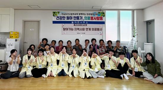 이날 전남보건고 교직원 및 학생 10명은 월야면 양지마을 경로당을 찾아 기초 건강검진을 비롯한 온열치료, 손 마사지 등의 의료봉사를 실시했다.