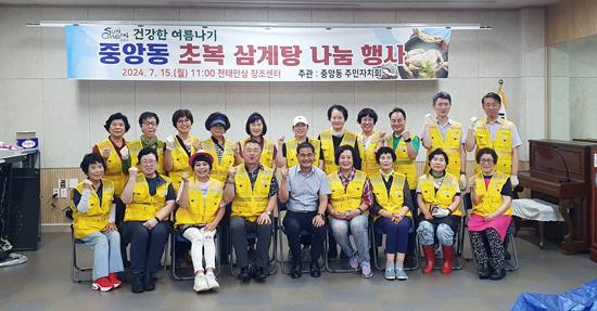 순천시 중앙동 주민자치회는 지난 15일 초복을 맞아 천태만상 창조센터에서 순천시민 300여 명을 대상으로 삼계탕 나눔 행사를 진행했다.