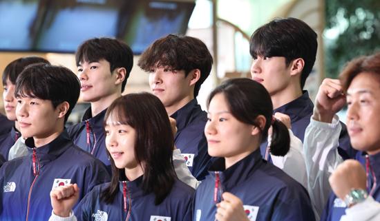 이정훈 총감독이 이끄는 한국 수영 경영 대표 선수 15명은 16일 인천국제공항을 통해 파리로 출국했다.