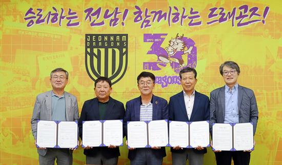 전남드래곤즈 김규홍 대표는 “지역사회의 기업에서 전남드래곤즈와 함께 선한 영향력을 보여주셔서 진심으로 감사하다”면서 “응원해 주시는 것에 큰 힘을 얻고 있으며 많은 득점과 승리를 통해 지역민들께서 기뻐하실 수 있도록 노력하겠다”고 화답했다.