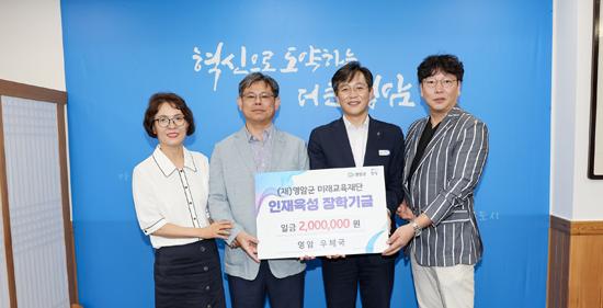 영암우체국이 지난 12일 (재)영암군미래교육재단에 장학기금 200만원을 기탁했다.