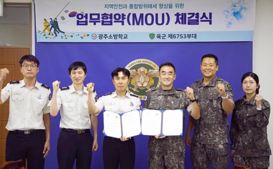 광주소방학교와 육군 제6753부대는 23일 소방학교 회의실에서 지역 안전과 통합방위태세 향상을 위해 공동 협력체계를 구축키로 하고 업무협약을 체결했다.