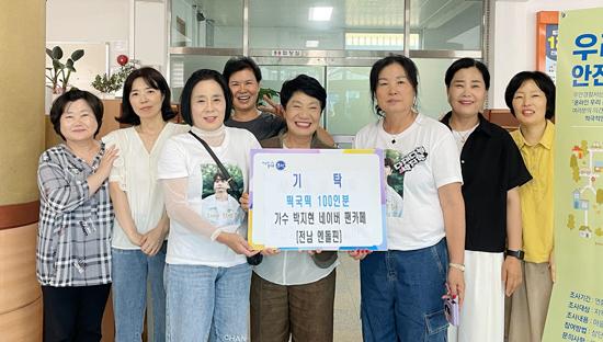 전남 엔돌핀 관계자는 “목포 출신 가수 박지현의 이름으로 선한 영향력을 널리 퍼트리고 싶어 후원물품을 기탁했다”면서 “무안읍에 도움이 필요한 이웃들에게 조금이라도 도움이 될 수 있으면 좋겠다”고 말했다.