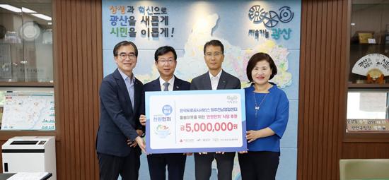 한국도로공사서비스(주) 광주전남영업센터가 지난 1일 광산구 ‘우리동네 천원한끼’에 500만 원을 후원했다.