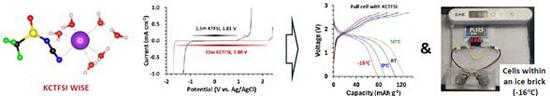 또 해당 수용액의 전압 안정성이 3.5볼트(V) 이상에 이르고 저온에서도 결정화되지 않는다는 점도 확인했다.