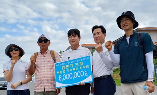 한국남자프로골프(KPGA) 투어에서 활약하고 있는 프로골퍼 김민규 선수가 7일 모교인 평동초등학교에 인재육성 장학금을 전달했다.