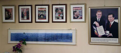 사진은 서울 마포구 동교동 사저 접견실 벽면에 미국 타임지와 뉴스위크 표지를 장식한 김대중 전 대통령의 모습이 담긴 액자가 걸려있는 모습.