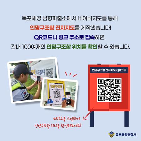 QR코드를 촬영하기만 하면 전자지도를 통해 인명구조함의 정확한 위치와 최적 이동경로를 확인할 수 있어 연안사고 발생 시 신속한 구조 활동에 기여할 것으로 기대된다.