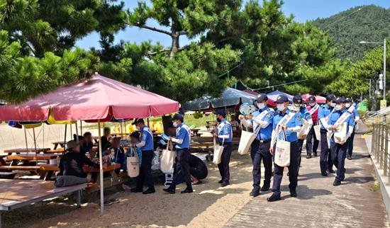 휴가철 해양사고 예방을 위해 진행된 이번 캠페인에서는 지휘관을 비롯한 해양경찰 관계자 13명이 해수욕장 이용객 대상 구명조끼 착용 생활화 및 물놀이 안전수칙 준수 등을 당부하며 해양안전문화 확산 홍보활동을 전개하였다.