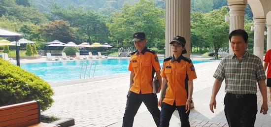 담양소방서는 지난 13일 관내 담양리조트를 방문해 여름철 화재예방을 위한 다중이용시설 관서장 현장 지도방문을 실시했다고 밝혔다. /담양소방서 제공