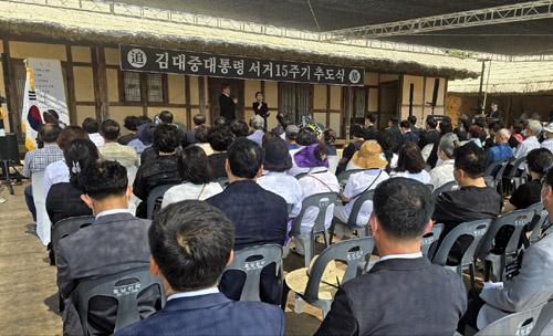 광주전남김대중재단은 18일 최경주 재단 대표와 박우량 신안군수 등이 참석한 가운데 전남 신안군 하의도의 김 전 대통령 생가를 방문해 15주기 추모 행사를 진행했다.