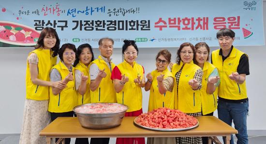신가동 마을공동체인 ‘신풍사공’, 신가동 바르게살기위원회원 등 11명은 16일 광산구 생활환경종합센터(월전동)를 찾아 광산구 시설관리공단 소속 청소노동자 200명에게 수박화채를 전달했다.