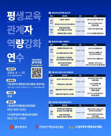 광주시와 (재)광주인재평생교육진흥원(이하 진흥원)은 9월부터 지역 내 민간·공공 평생교육 관계자와 평생교육사 등을 대상으로 \'평생교육 관계자 역량강화 연수\'(이하 연수)를 운영한다.