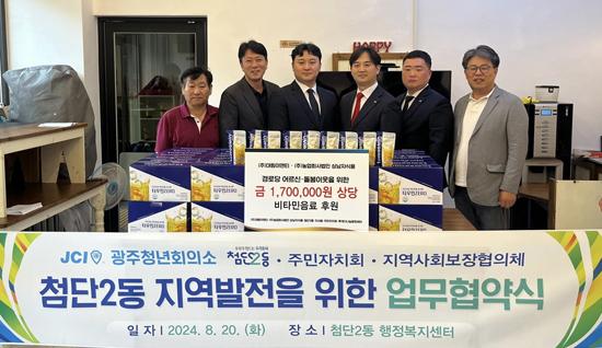이날 협약은 채동훈 첨단2동장, 김상문 광주청년회의소 회장, 전창현 첨단2동 주민자치회 회장, 안병모 첨단2동 지역보장협의체 위원장이 참석했다.