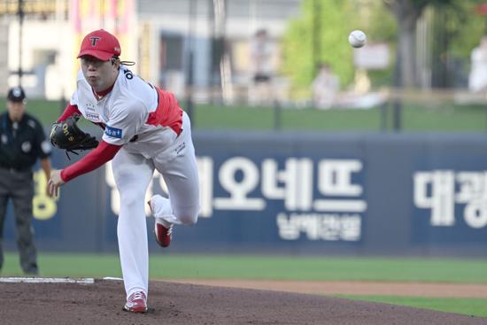 양현종은 1회 선두타자 황성빈을 헛스윙 삼진으로 처리한 뒤 2회 무사 1루에서 나승엽을 루킹 삼진으로 돌려세웠다. 이어 3회 2사 1루에서는 윤동희를 헛스윙 삼진으로 정리했다.