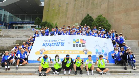 보해양조는 22일 해양 환경보호 프로젝트인 \'대학생 87㎞ 비치대장정\'의 후원사로 참여해 목포 유달유원지에서 해안 정화 활동을 펼쳤다고 밝혔다.