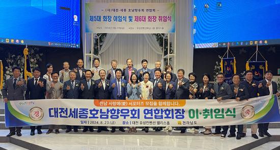 전남도는 대전세종호남향우회 연합회가 제5~6대 회장 이취임식을 지난 23일 대전 유성컨벤션웨딩홀에서 개최하고, 고향 발전에 앞장설 것을 다짐했다고 밝혔다.