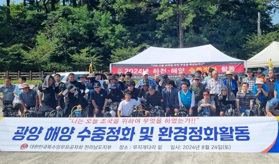 광양시는 중마동 무지개다리 일원에서 대한민국 특수임무유공자회, 자원봉사자 등 약 70여 명이 참여해 수중 정화 활동을 진행했다고 27일 밝혔다.