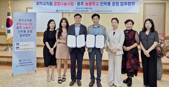 광주교육시민협치진흥원은 27일 소강당에서 공무원연금공단 광주·전북지부와 ‘퇴직교직원 꿈빛나눔사업 및 광주 늘봄학교 인력풀 운영‘ 업무협약을 체결했다.