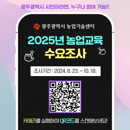 광주시농업기술센터는 오는 10월18일까지 ‘2025년도 농업교육 수요조사’를 실시한다. 내년도 농업 교육과정 개설에 앞서 현장 교육 수요를 적극 반영하기 위해서다.