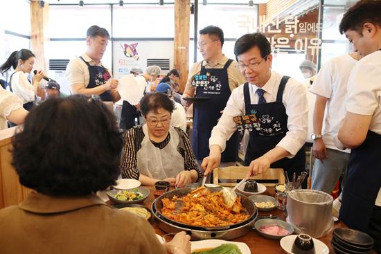 \'수완 잇는 반가운 찬\'은 수완동 골목상권 음식점인 ‘마녀의 닭갈비’를 시작으로 오는 12월 말까지 지역 6개 식당(마녀의 닭갈비, 도야짬뽕, 오리한국별관, 해궁, 사계진미 숯불닭갈비, 야한대패 삼겹살)을 순회하며 추진한다.