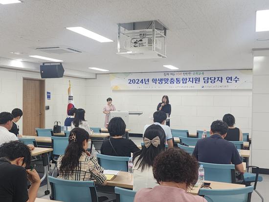 순천교육지원청은 순천만생태문화교육원에서 관내 초ˑ중ˑ고ˑ특 업무 담당자 및 참여 희망 교직원을 대상으로 2024. 학생맞춤통합지원 인식도 및 이해도 제고를 위한 연수를 실시했다고 29일 밝혔다.