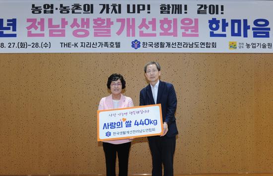 기탁식은 이날 구례 The-K 지리산가족호텔에서 열린 ‘2024년 전남생활개선회원 한마음교육’ 행사와 함께 진행됐다.