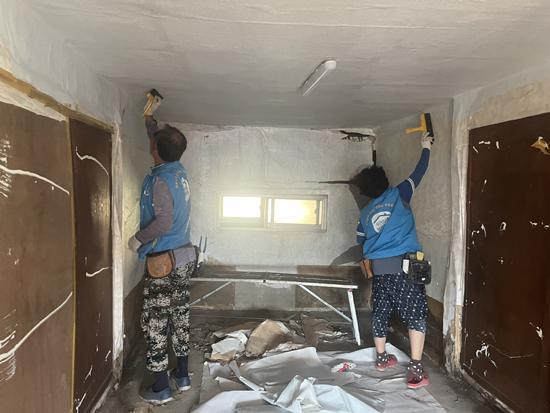 함평읍 우리동네 복지기동대원들은 이틀에 걸쳐 들뜨고 노후된 도배, 장판을 새로 교체하고, 누수되고 있는 싱크대를 교체했다.