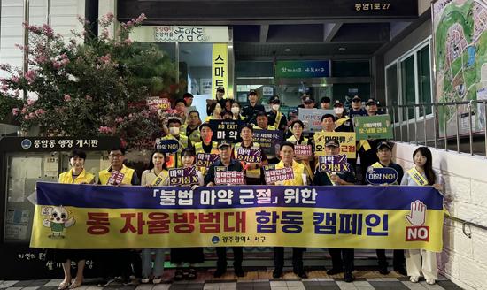 광주시 서구는 지난 4일 풍암동 먹자골목 일대에서 동 자율방범대, 마약류 명예지도원과 함께 찾아가는 마약 근절·예방 캠페인을 실시했다.