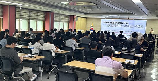 이번 교육은 순천장애인종합복지관 문근아 팀장의 ‘다양성과 포용을 향한 새로운 길’이라는 주제로 장애에 대한 깊은 이해와 존중에 대한 내용을 다뤘다. 장애인과 비장애인이 서로 존중하고 장애 감수성을 키우기 위한 분위기를 확산할 수 있도록 했다.