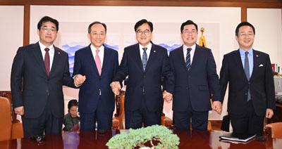 추경호 국민의힘·박찬대 더불어민주당 원내대표는 이날 우원식 국회의장 주재로 국회에서 만나 여야의정 협의체 구성과 운영에 관해 논의했다.