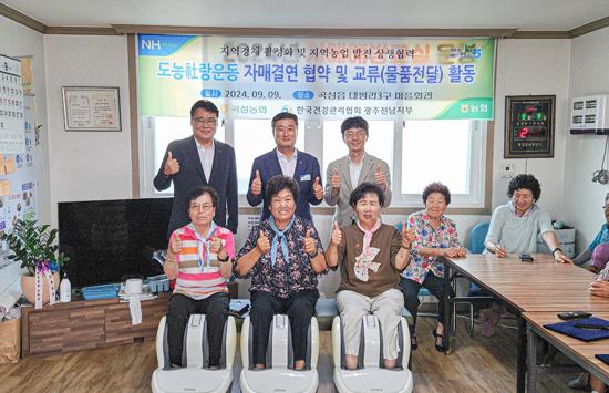 외송마을에 물품(비료살포기 2대)와 곡성군 마평마을에 물품(발마사기3대)을 전달했다.