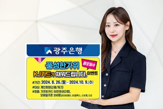 광주은행이 KJ카드 개인 고객을 대상으로 10월 9일까지 \'풍성한가위 KJ카드가 채워드립니다\' 이벤트를 진행한다.