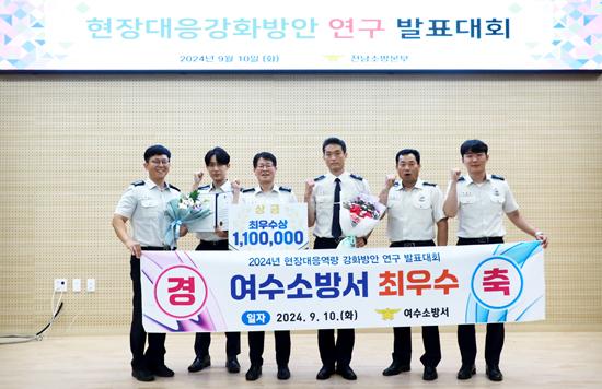 여수소방서가 지난 10일 전남소방학교에서 개최된 ‘현장대응역량 강화방안 연구 발표대회’에서 최우수상을 수상했다.